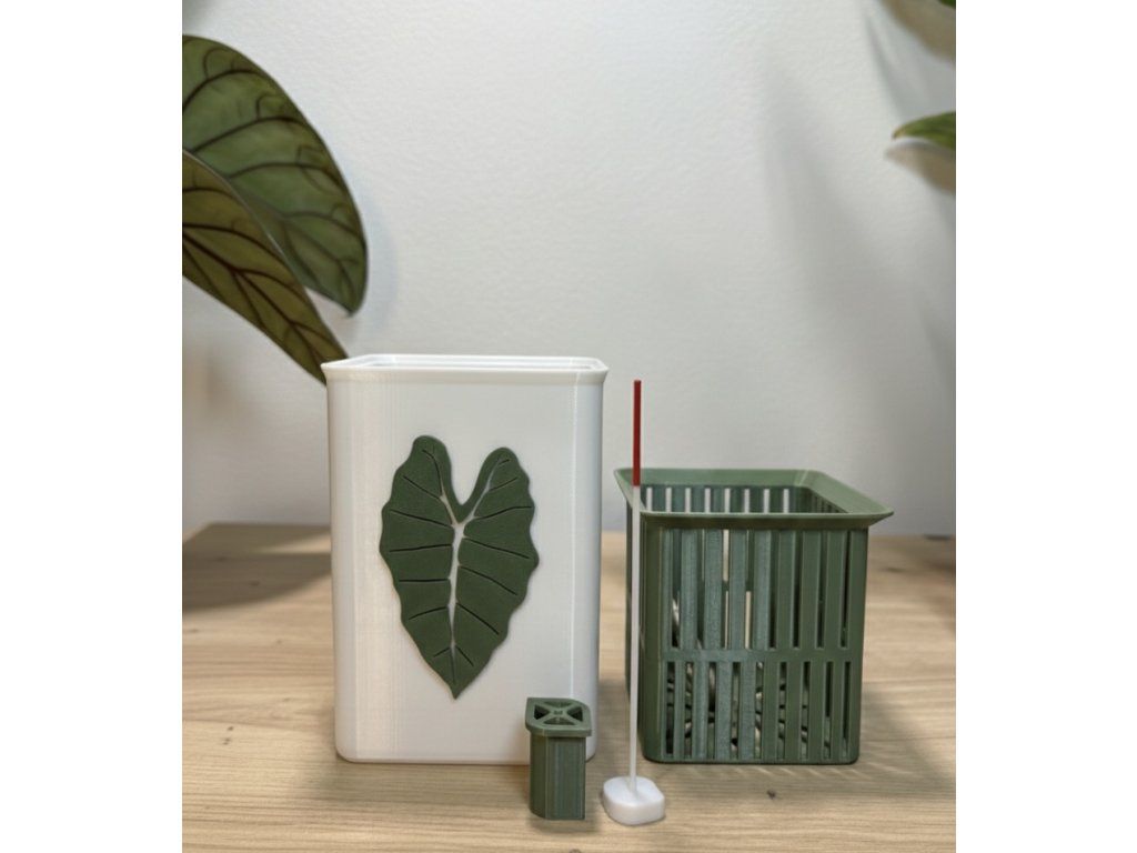 Samozavlažovací systém navržený pro stabilní přísun vlhkosti k rostlině. Skládá se z designového obalu, který slouží jako zásobník na vodu, a vnitřního vyjímatelného košíku.